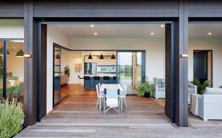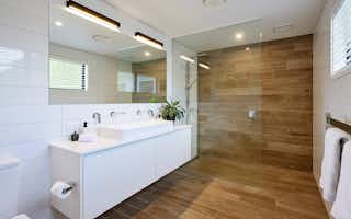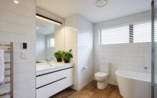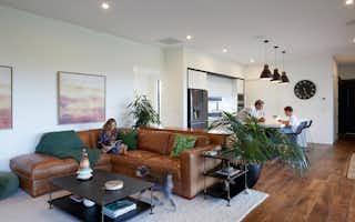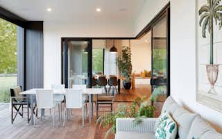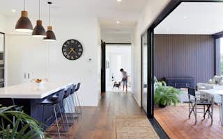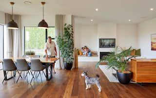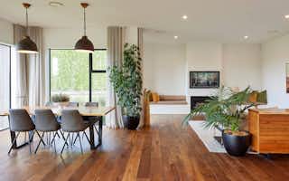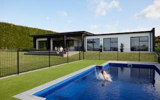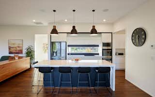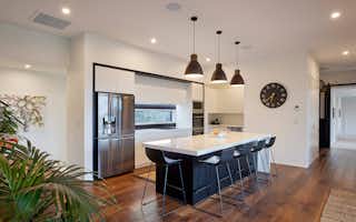 Taking inspiration from Signature Homes' Seaview plan, the design was tweaked slightly to suit the owners' needs while the interior and exterior take on a completely different look and feel. Impressive vintage oak flooring carries through the kitchen, dining and living areas to create a seamless entertaining space.