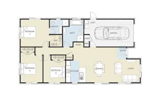 The three-bedroom Snipe plan makes great use of space at every turn. Open plan living helps to create more space throughout the home, allowing for bonus areas such as a study nook. Extra features include a generous family bathroom and a large master bedroom.