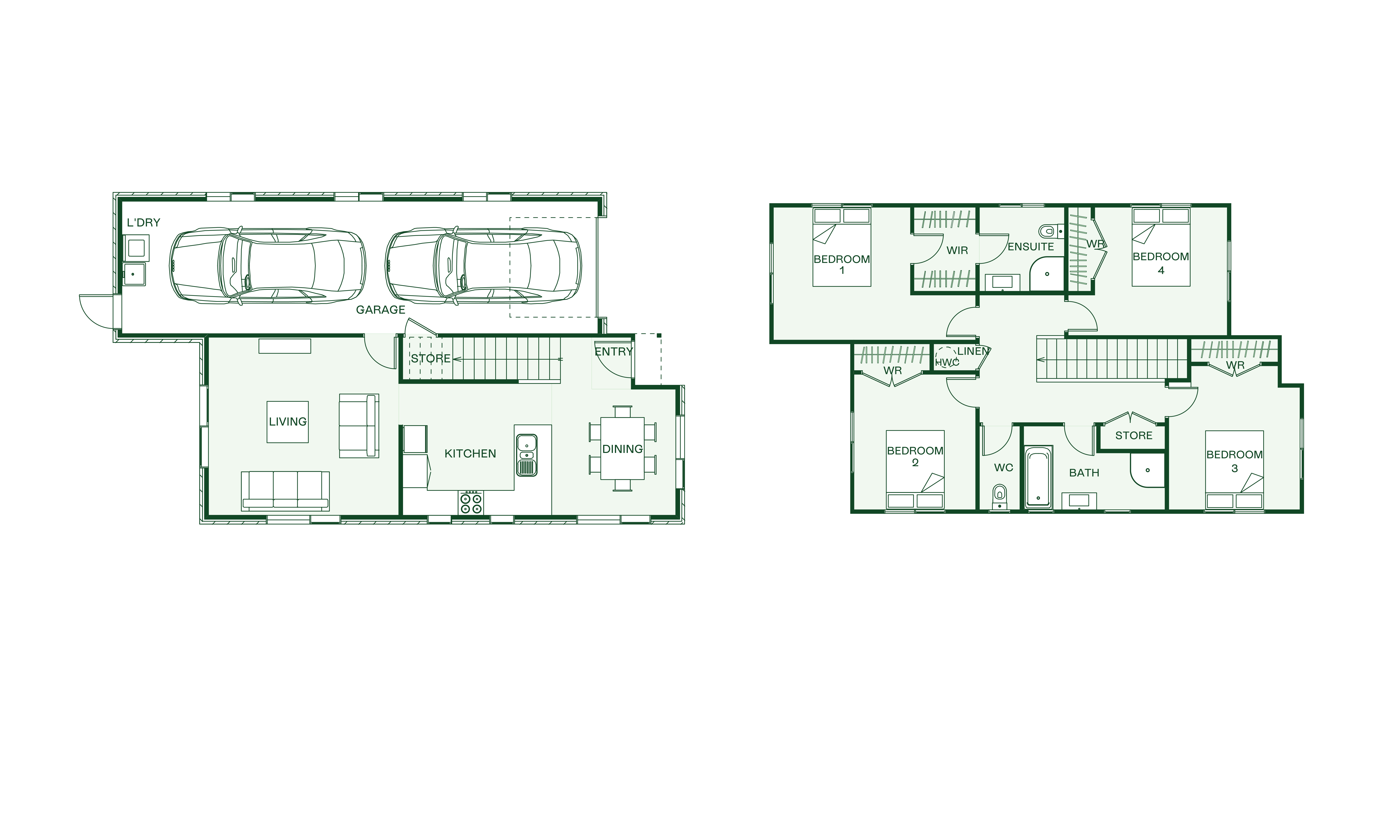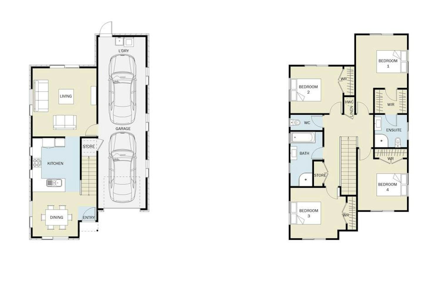 The two-storey, four-bedroom Stitchbird is a smart option if you're looking to maximise your section. With a footprint of just under 200m2, you'll be impressed by what is in offer in this plan—featuring four well-sized bedrooms 2.5 bathrooms; there's plenty of room for the entire family. Downstairs you'll find two clearly defined spaces for dining and living, as well as seamless flow to the outdoors.