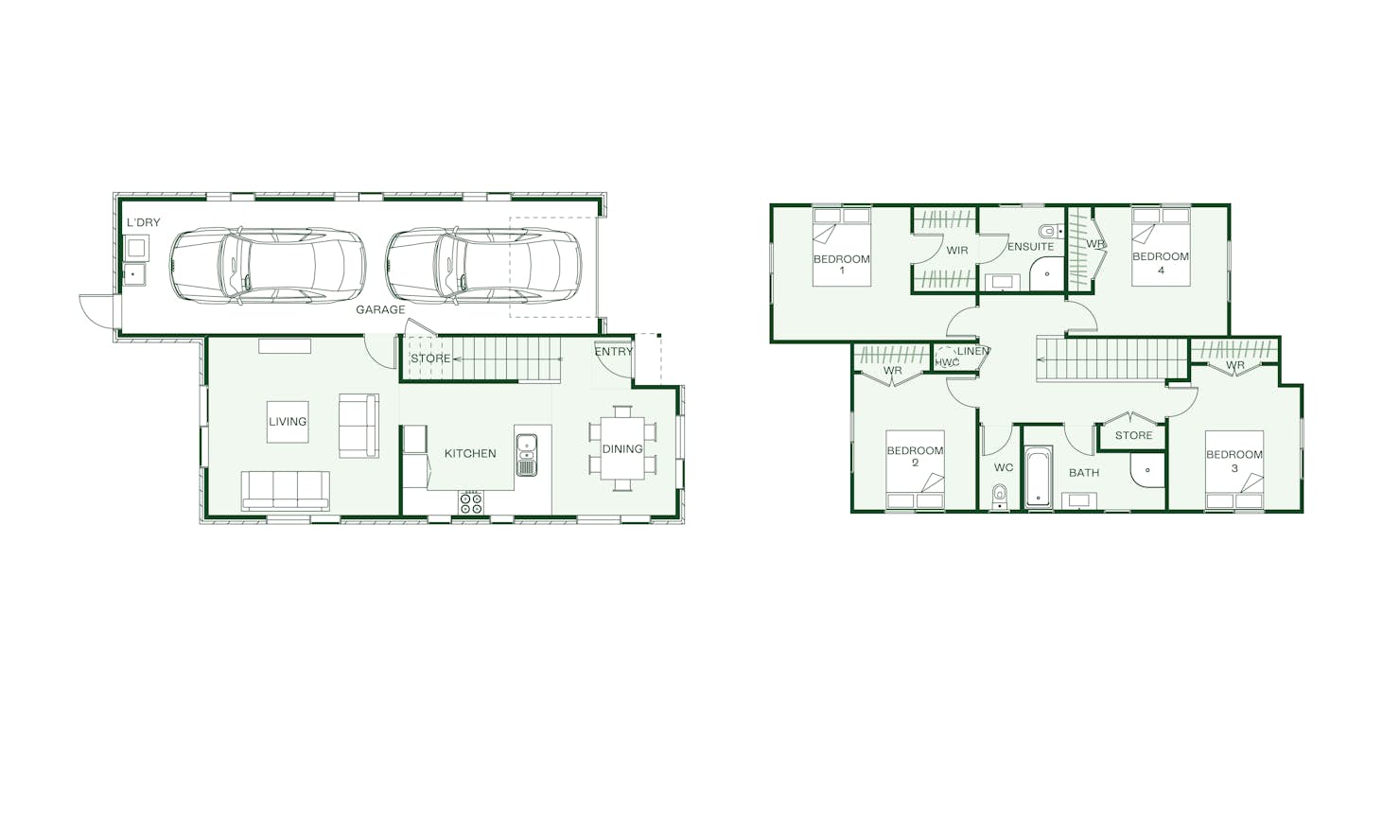 The two-storey, four-bedroom Stitchbird is a smart option if you're looking to maximise your section. With a footprint of just under 200m2, you'll be impressed by what is in offer in this plan—featuring four well-sized bedrooms 2.5 bathrooms; there's plenty of room for the entire family. Downstairs you'll find two clearly defined spaces for dining and living, as well as seamless flow to the outdoors.