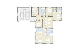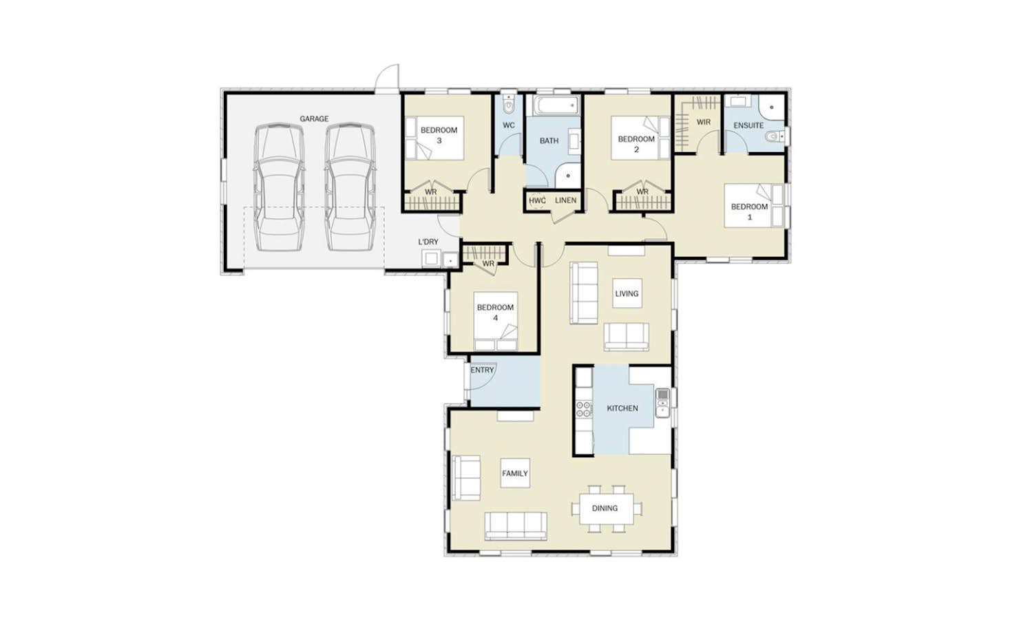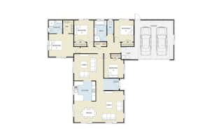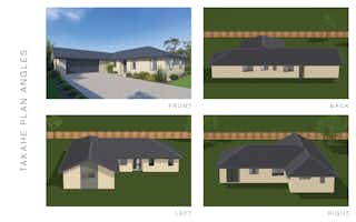 Our T-shaped Takahe plan has four bedrooms including a master suite complete with walk-in wardrobe and ensuite.
