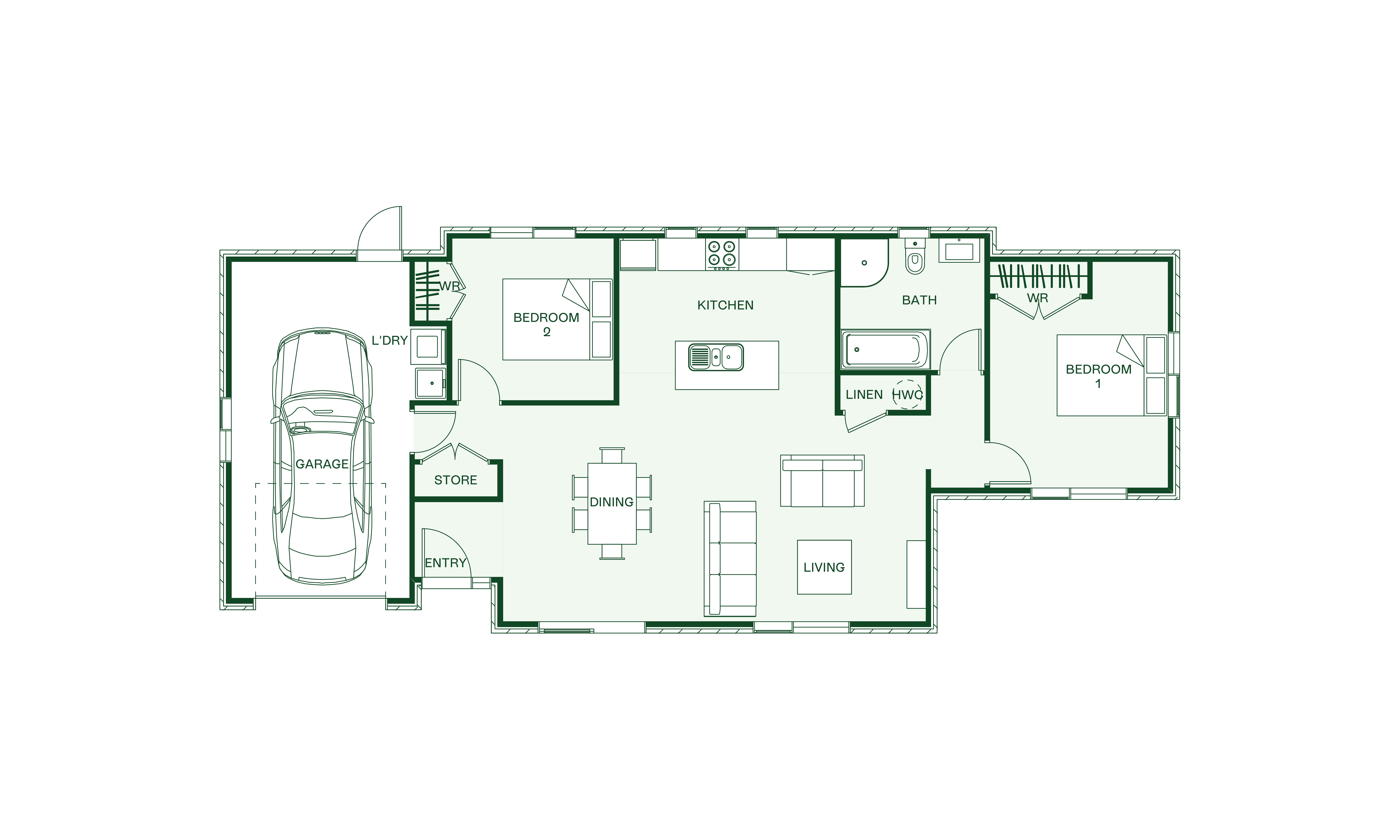 Good things come in small packages, and the Tui does not disappoint. This plan features two spacious double bedrooms, an open-plan kitchen, living and dining area and a single internal access garage, all in 116m2.