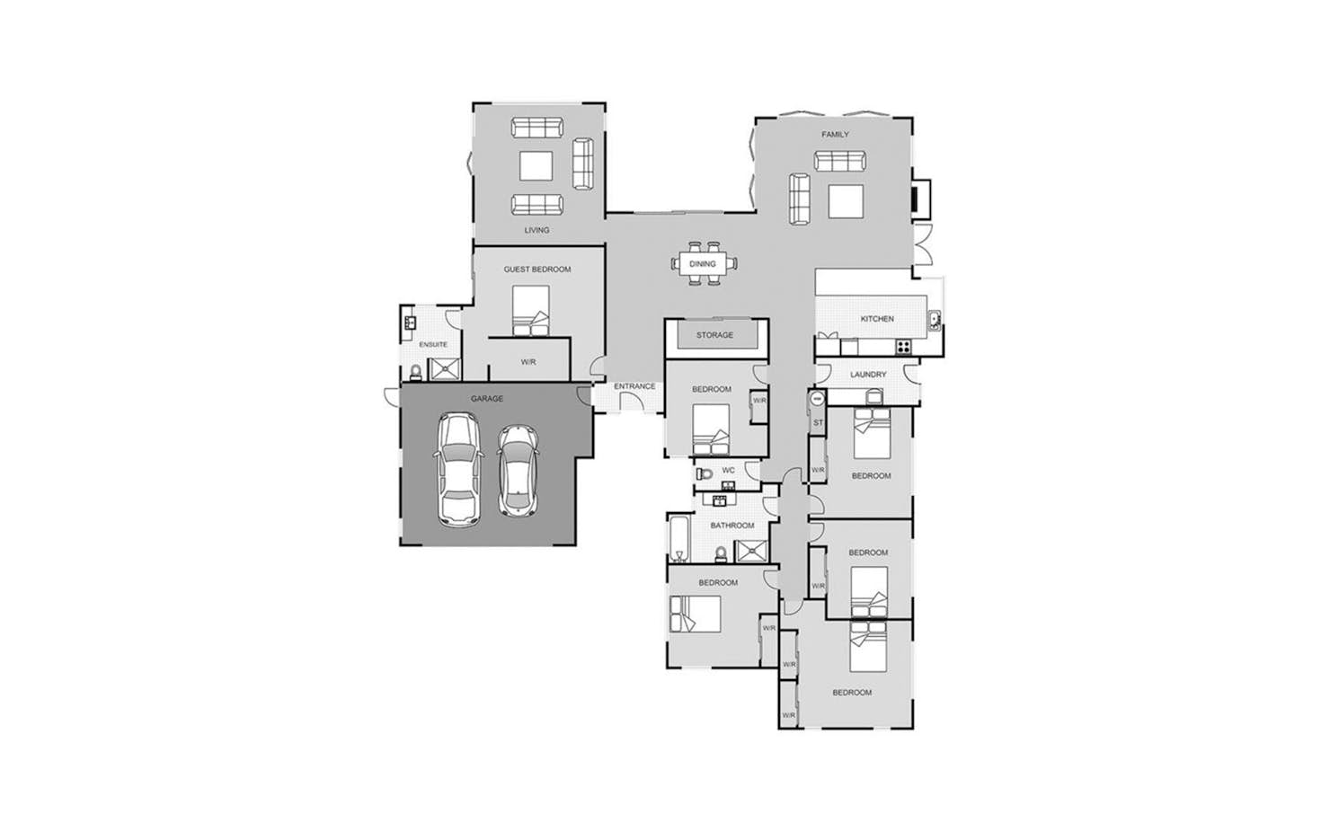 An expansive floorplan sees you enter into the light, bright social spaces including a large island bench in the kitchen, plenty of storage, a full laundry room, and the all-important second lounge. The master suite is also tucked away in this part of the house and includes a dressing room and ensuite.