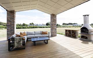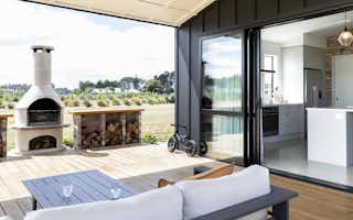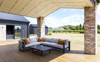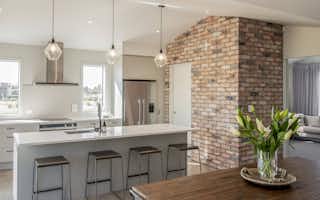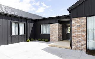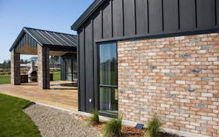 The exterior cladding is a true marriage of old and new, with reclaimed-style bricks complemented by striking blackboard and batten.
