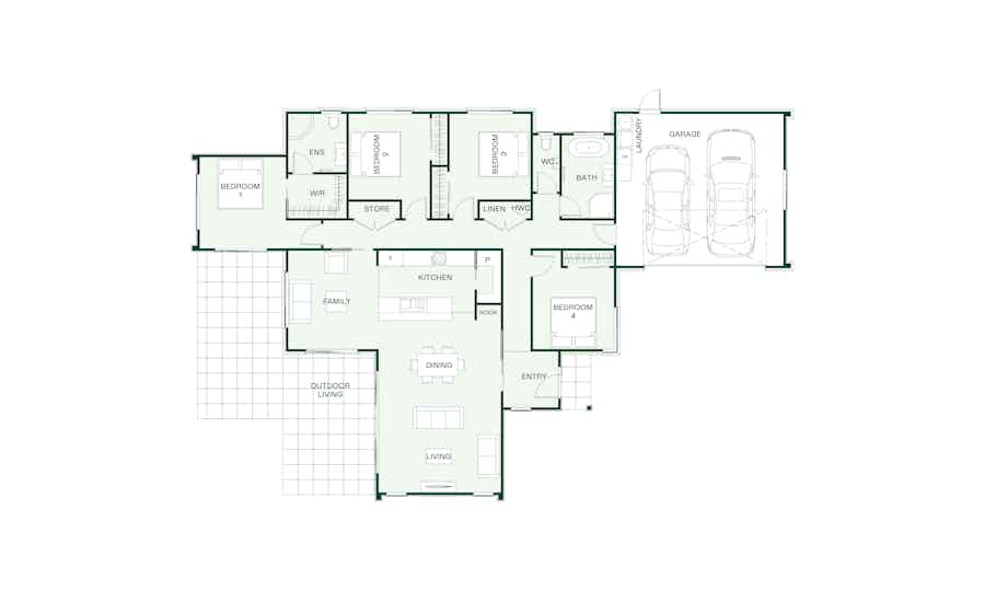 Ideal for contemporary living, the four-bedroom Tavai house plan by Signature Homes welcomes you with a spacious open-plan living and dining area, seamlessly connected to a well-designed kitchen. The separate living area provides ample space for the entire family.