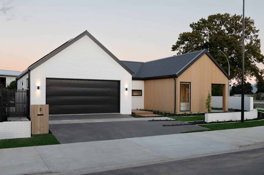 A modern three bedroom custom build, featuring a striking exterior and an inviting interior.