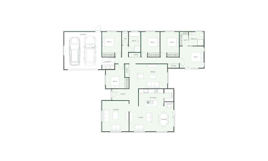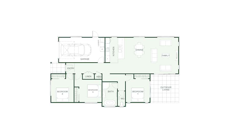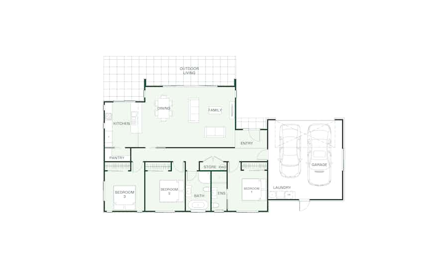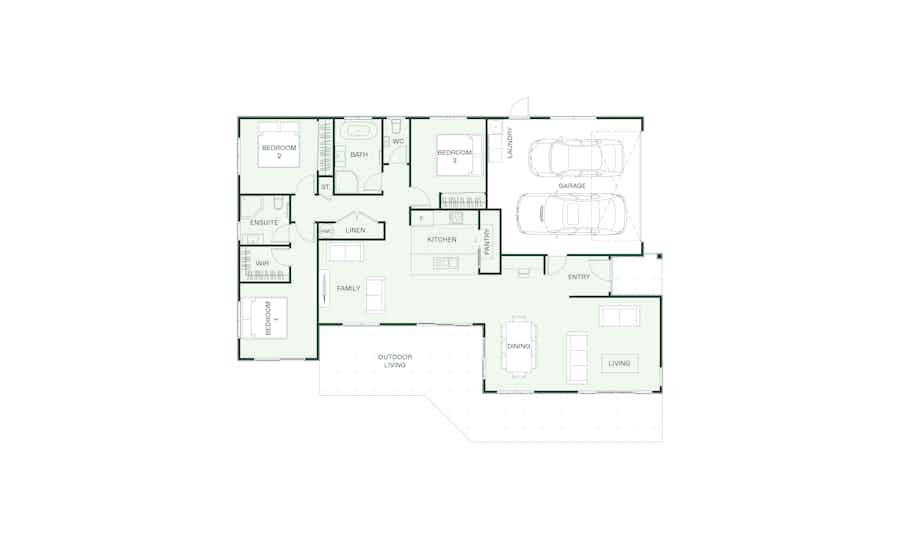 Our Fernbird plan offers an ideal family home or investment build. You will find a bedroom ideal for guests or teenagers at the entrance, with the remaining three bedrooms tucked away at the back of the home.
