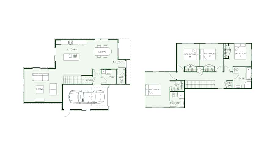 The four-bedroom Kakariki plan fuses style and function. With an open plan layout that welcomes light into your home.