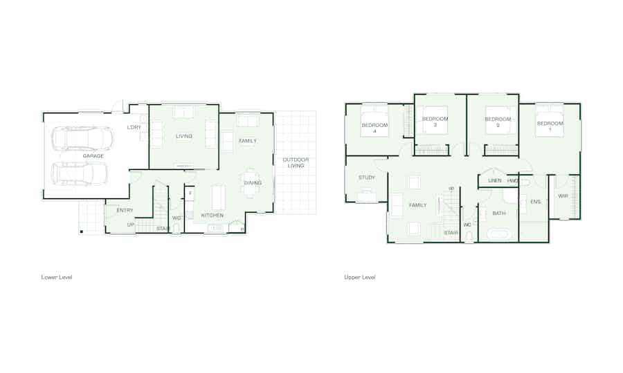 This four-bedroom Weka plan offers flexibility and space with two living areas providing options for entertaining and relaxation.