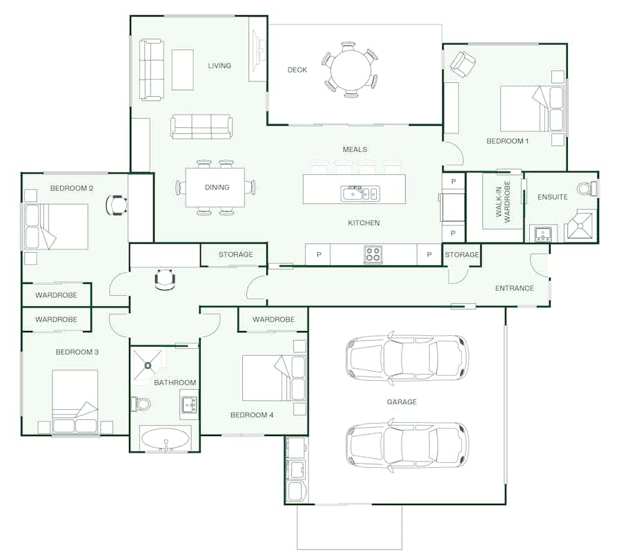 The Kea plan features four generously sized bedrooms, with the master suite positioned away from the main living spaces. The master suite includes a large walk-in robe and ensuite.