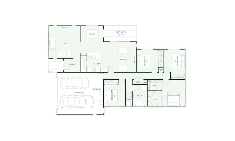 Enjoy relaxed living with the Tane plan, featuring four spacious bedrooms thoughtfully layed out. The modern open plan kitchen, dining and living area perfectly embraces indoor-outdoor flow.