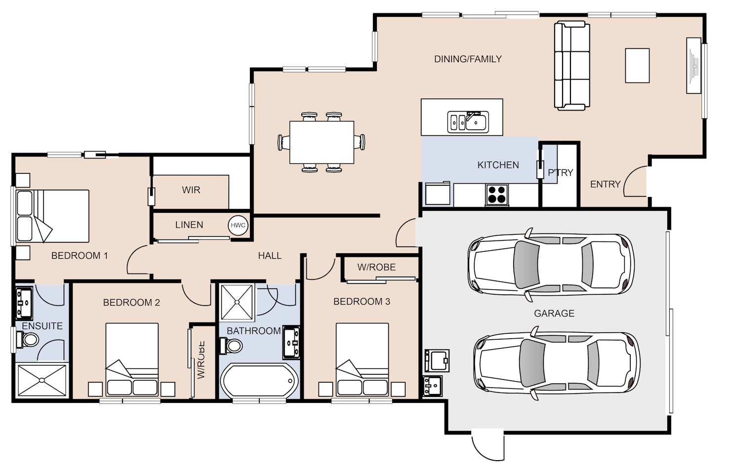 - Open-plan kitchen, dining and living with access to a stunning outdoor area