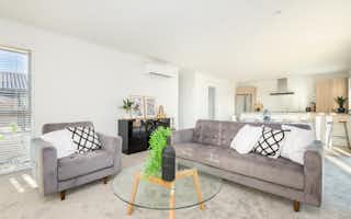 Our Faringdon Showhome features spacious kitchen, living and dining spaces that are framed by ample windows, and a seamless connection to the outdoors.