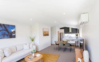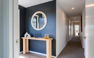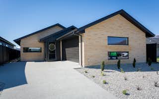 The Lake Hawea showhome features modern amenities designed for comfort and style. Its exterior showcases a beautifully crafted brick that harmonises with the breathtaking landscape of mountains and tussock grasses.