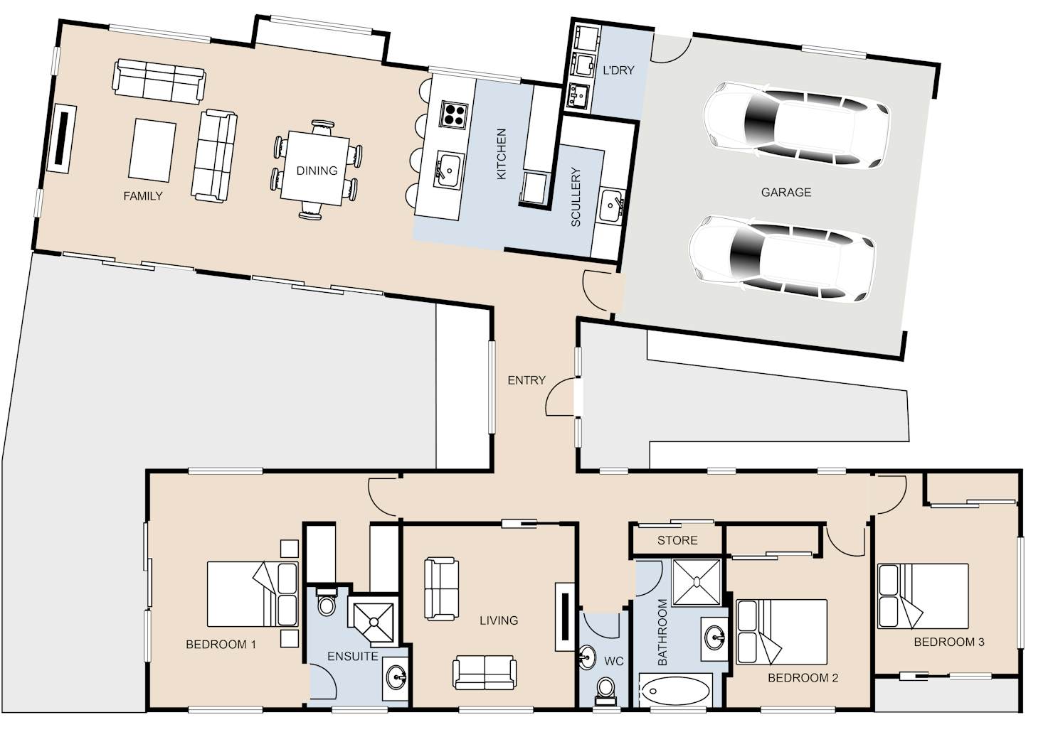 Our Paerata Rise showhome offers a perfect blend of modern design and comfort. Featuring three cozy bedrooms, a scullery, and an open-plan kitchen, the home is both functional and stylish. The kitchen flows into two inviting living areas, ideal for family living.